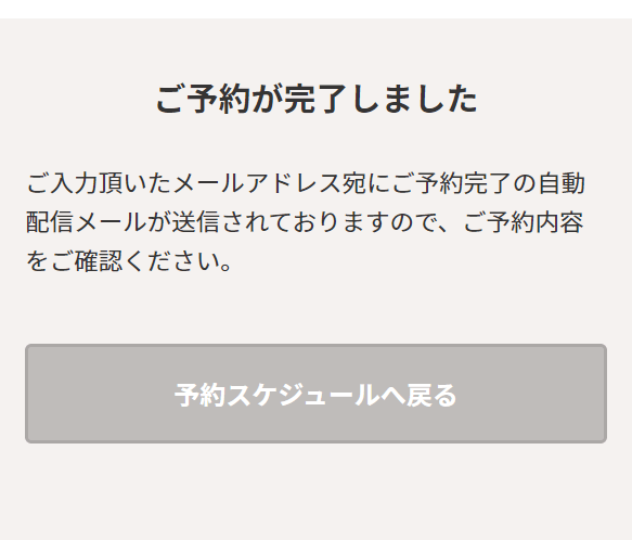 ご入力いただいたメールアドレスにレッスン詳細情報が自動送信されますのでメールをご確認ください。